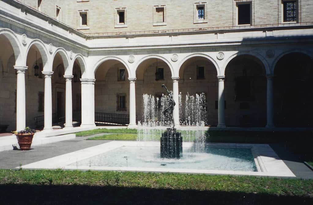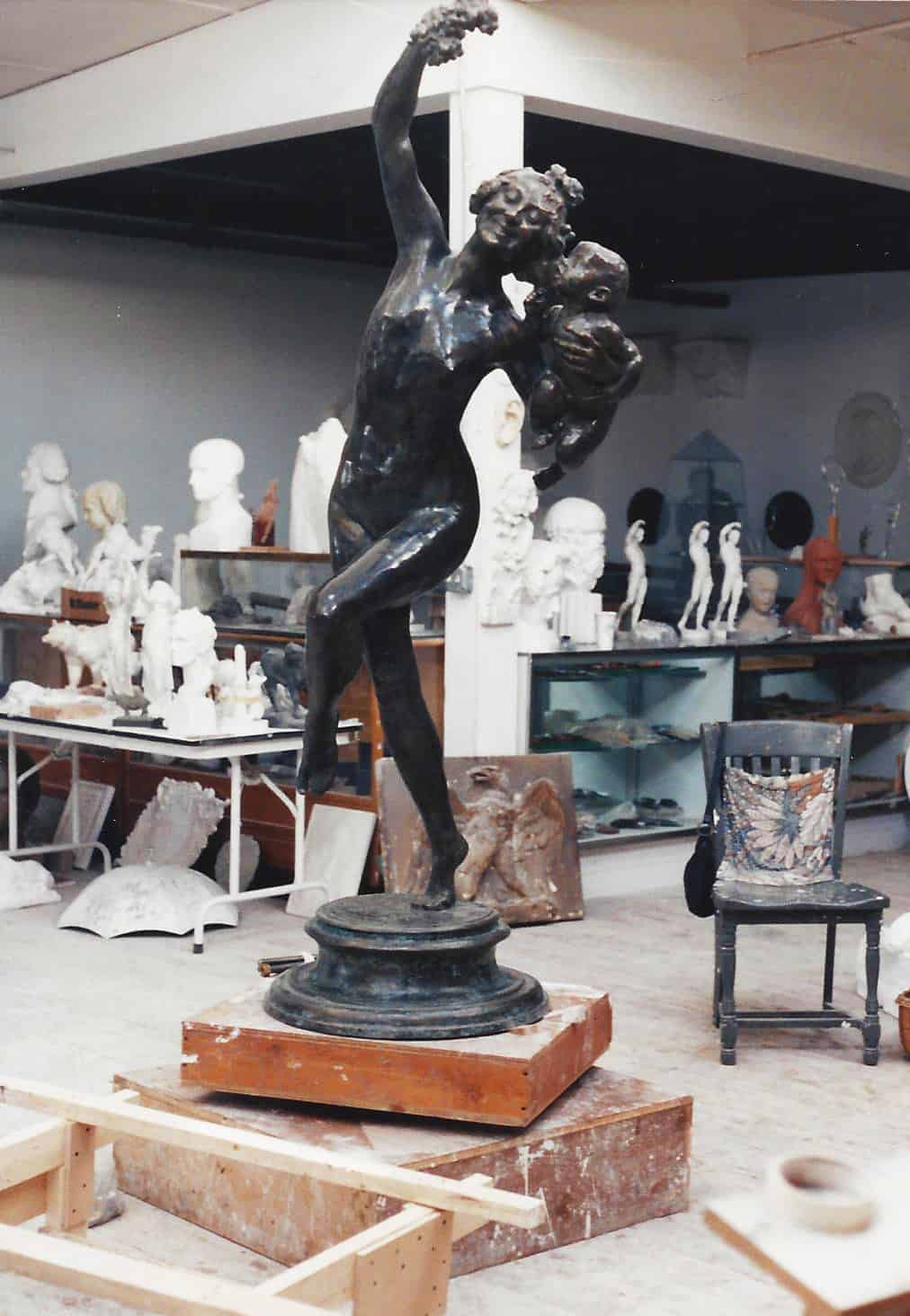 Well-known sculptor Frederick William MacMonnies created this life-size sculpture in the late 19th century and gave it as a gift to the acclaimed architect Charles Follen McKim who had helped him to study abroad. McKim was building the Boston Public Library at the time with his firm, McKim, Mead & White, and offered to donate the sculpture and place it in the future courtyard. However, the Library refused the offer after a public outcry concerning the offensively realistic, nude female, as opposed to the popular idealized figures of the time. The public also disapproved of the depicted bacchante (a follower of the Roman wine god Bacchus) due to the current temperance movement. McKim eventually donated it to the Metropolitan Museum of Art. Fast-forward about a hundred years, and the Boston Public Library and the George B. Henderson Foundation Fund commissioned Robert’s Skylight Studios to create a reproduction of the sculpture for the courtyard after all. The original sculpture had become so popular that it had been reproduced in several sizes and could be found in the collections of several museums. Robert used the copy of Bacchante and Infant Faun owned by the Museum of Fine Arts in Boston to make a mold and then cast a copy for the Library, appreciated by a new generation. In 2014, Robert was brought on to restore the sculpture including refinishing the patina, applying new protective coatings, and cleaning the base.