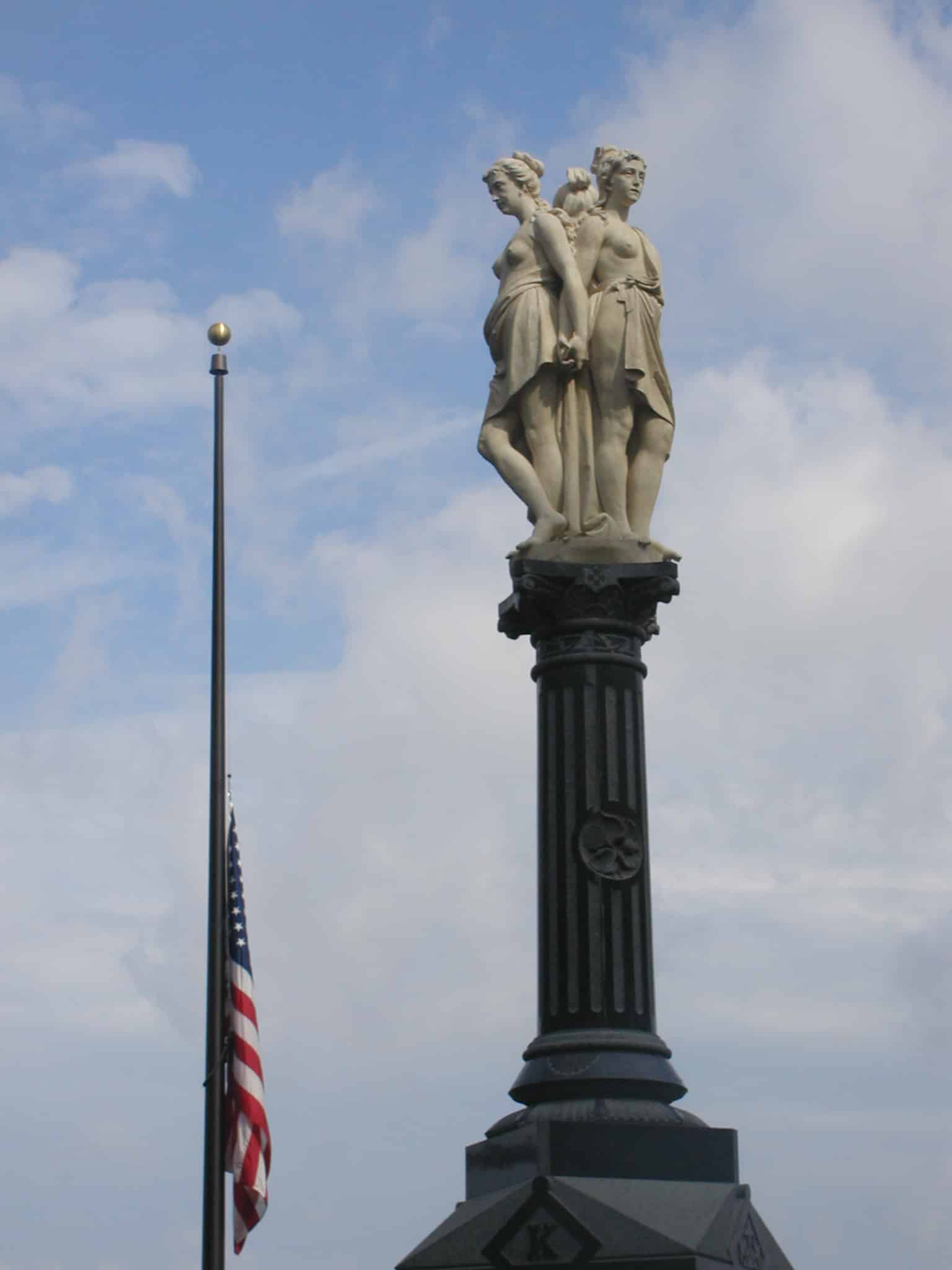 Everett Hosmer Barney and his wife and son are buried here. Everett Barney’s wealth came from fabricating weaponry for the Civil War and from his other business endeavors. He located this mausoleum, in what is now Forest Park, near their mansion. He bequeathed his estate and an endowment to Springfield to create a public park. For Skylight Studios’s project, the sculptural elements were restored, molds were fabricated, and the sculptures were reproduced in polyester resin to replace the originals.