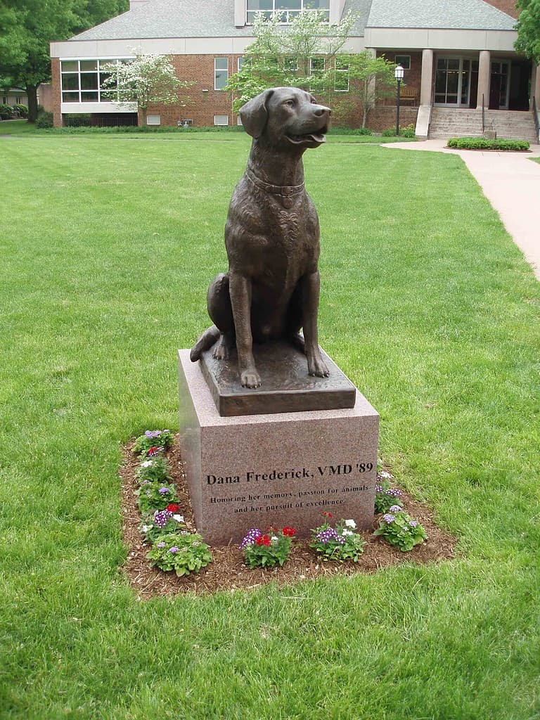 Located on the campus of the Ethel Walker School, this Black Labrador is a portrait of Hoops whose owner was Dana Frederick, VMD (Class of 1989). The sculpture was placed in honor of Dana by her parents after her death to be a lasting reminder of Dana on campus.