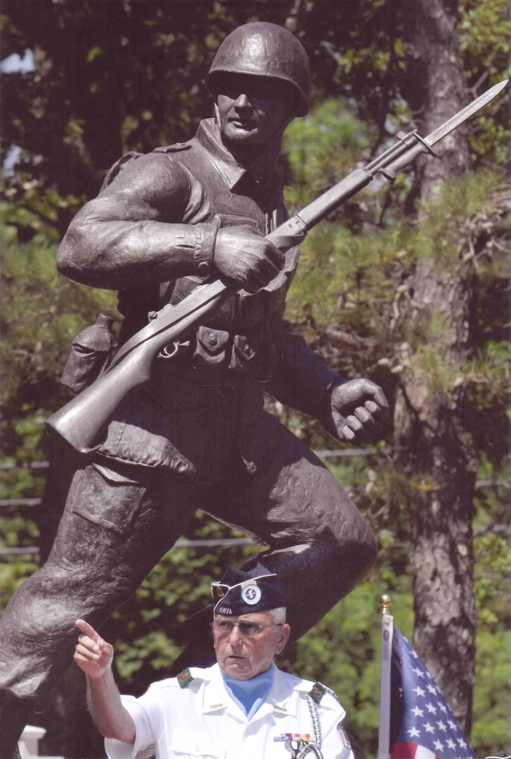 A memorial in commemoration of servicemen and servicewomen from Cape Cod and the Islands who served in the Korean War. A heroic-sized soldier is depicted charging uphill. Events and memorials are held at the site. Skylight Studios cast a second copy of the statue for the Korean War Veterans Association of Nassau County Chapter #1 for Westbury, New York.