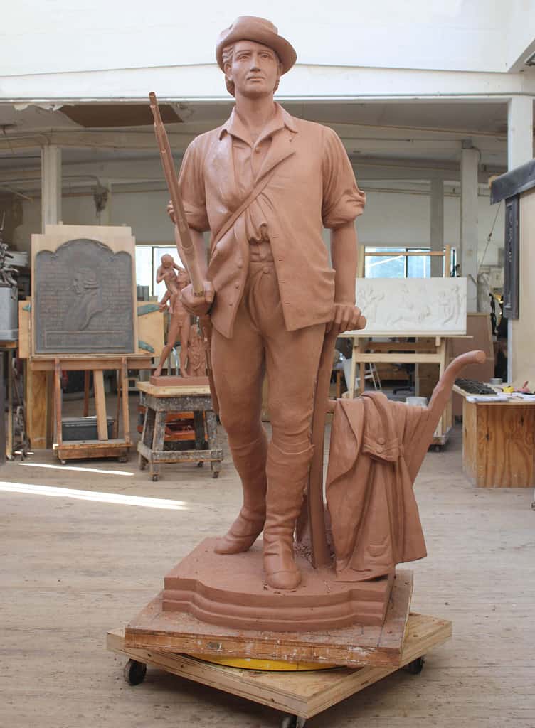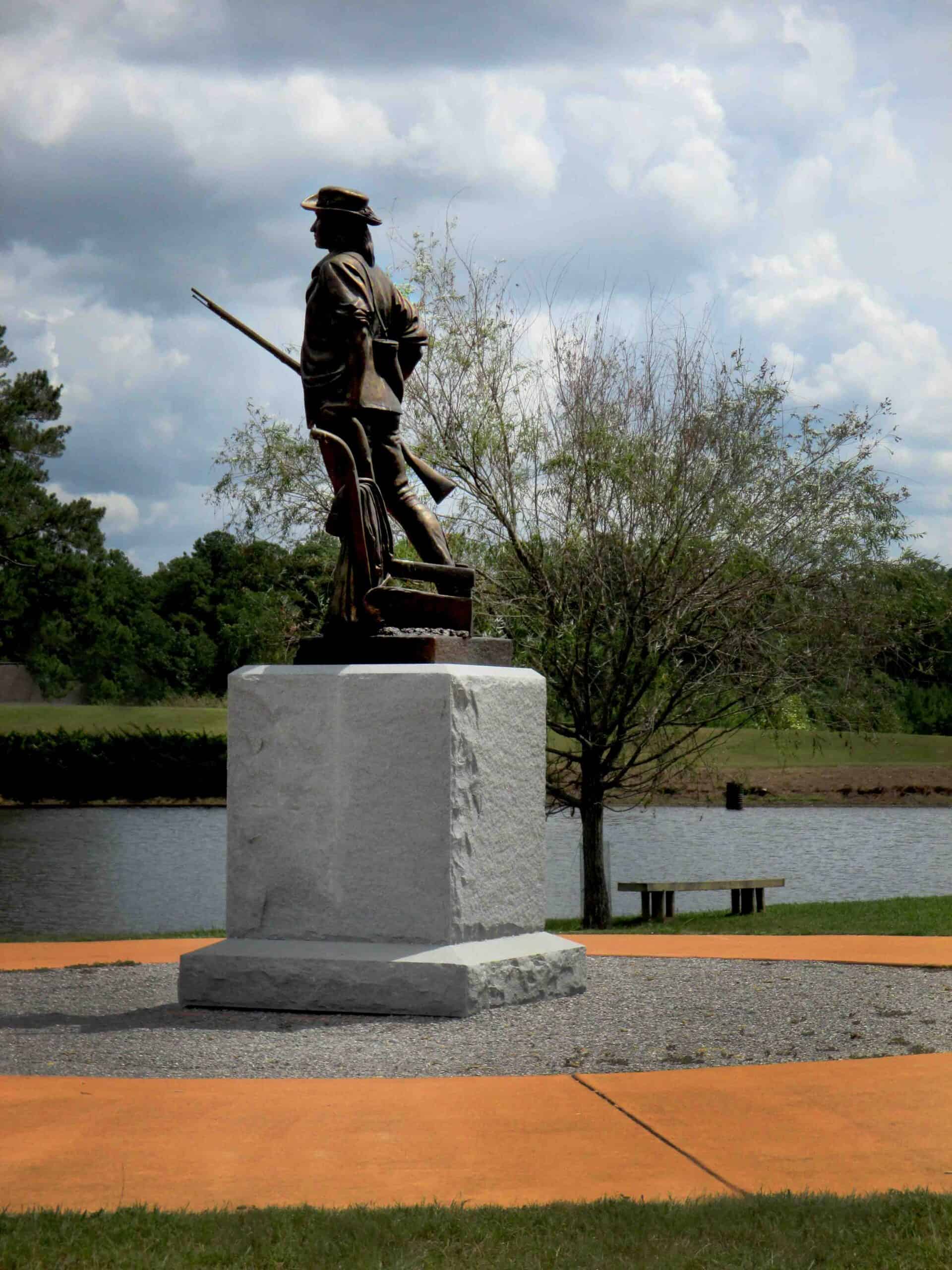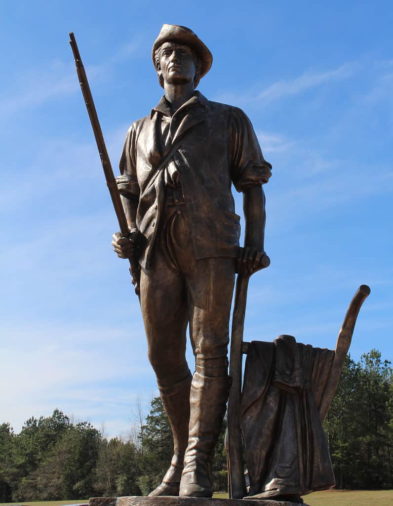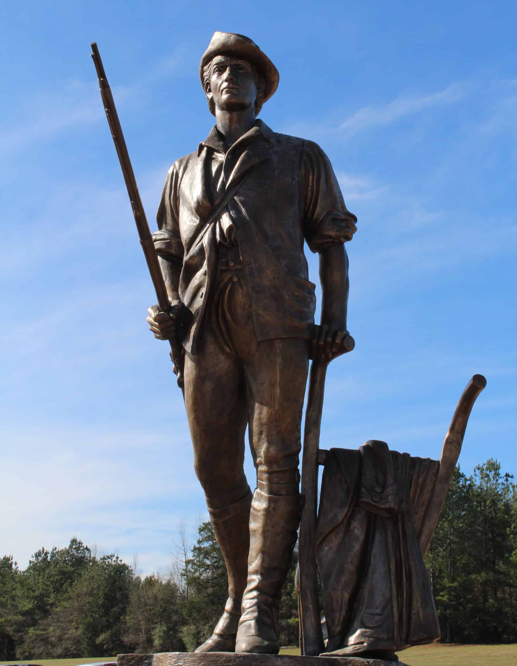 This statue was inspired by Daniel Chester French’s Minuteman of 1875 located in Concord, Massachusetts. The Embattled Farmer is placed on the American Village’s Freedom Trail.