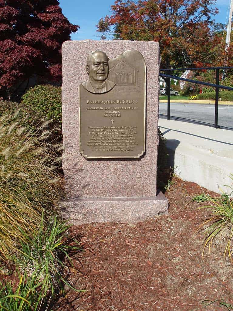 This portrait plaque was made as a tribute to Father John R. Crispo who served for many years at Saint Margaret Parish in Burlington, Massachusetts.
