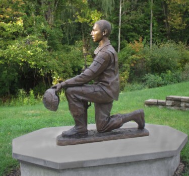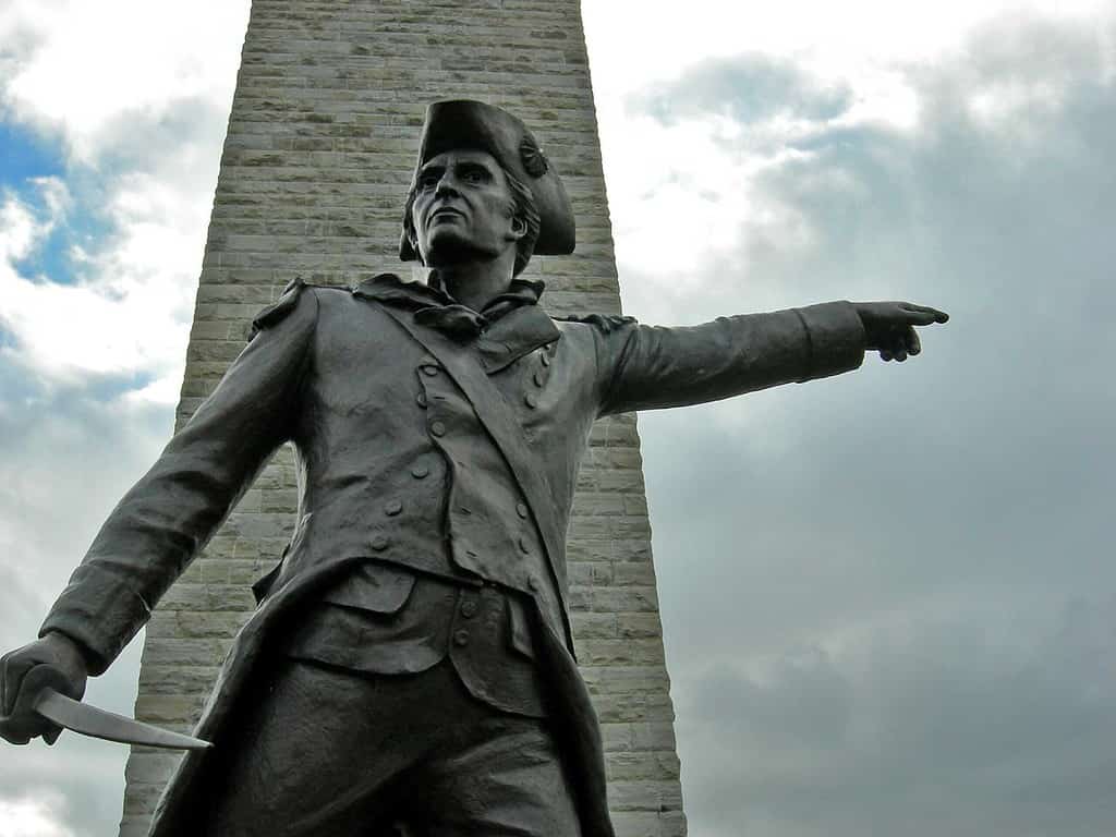 Major General John Stark fought with the Continental Army during the American Revolution and is remembered for his leadership in the Battle of Bennington. This sculpture was inspired by a model originally made by the sculptor John Rogers.