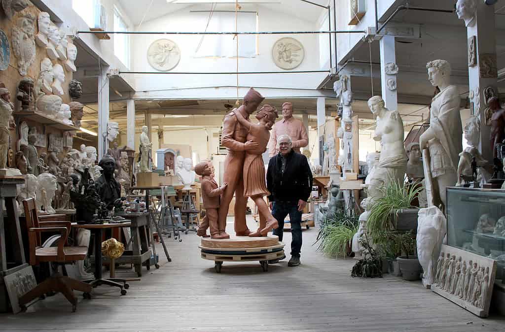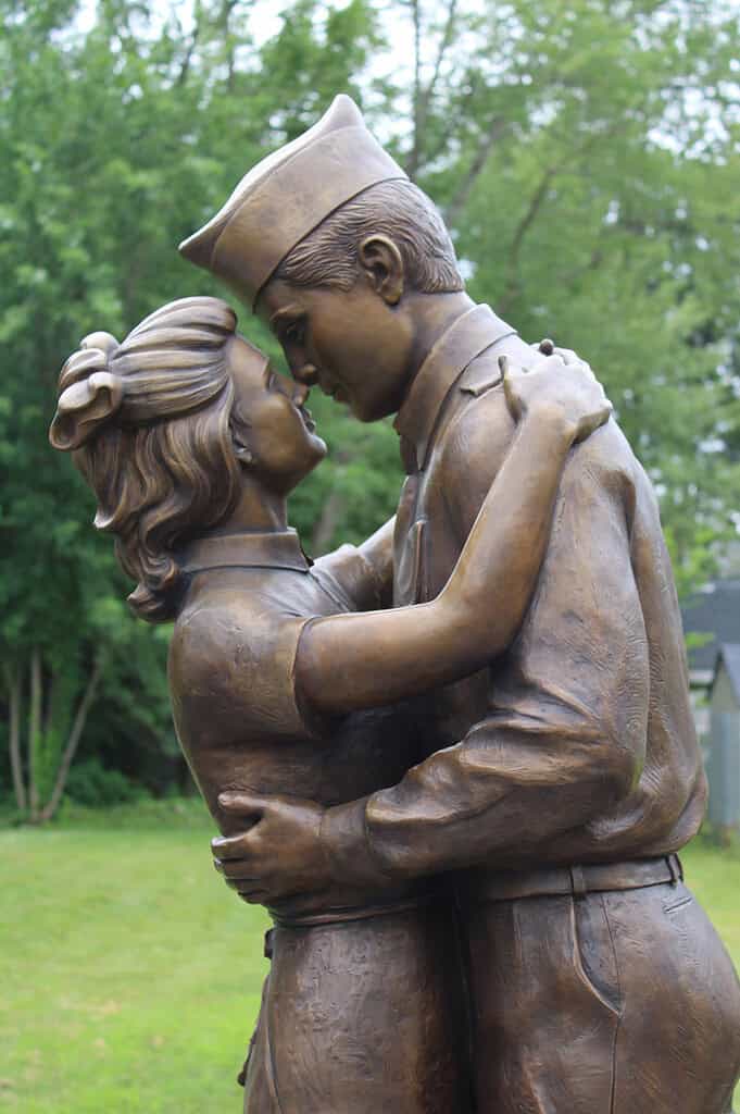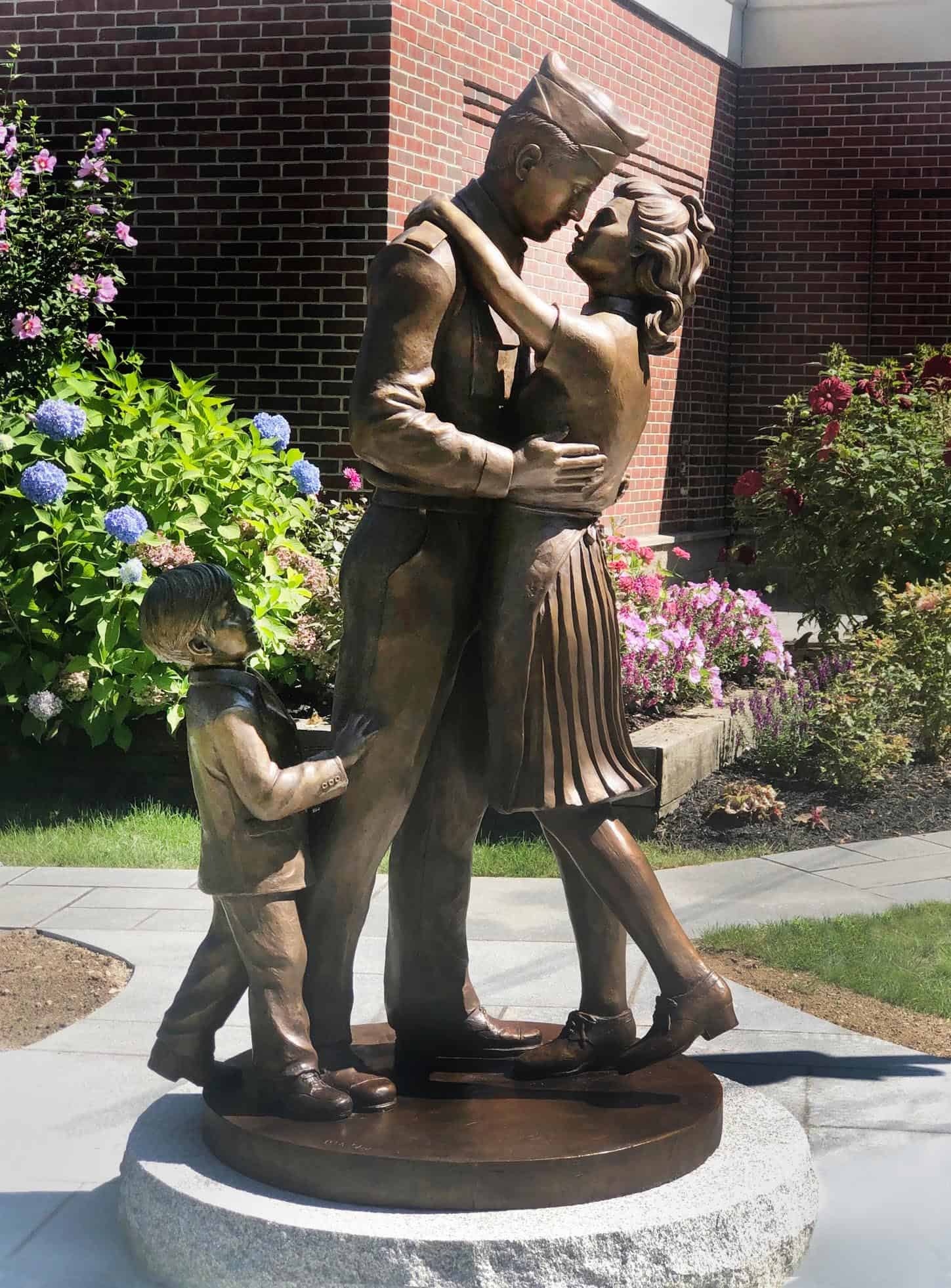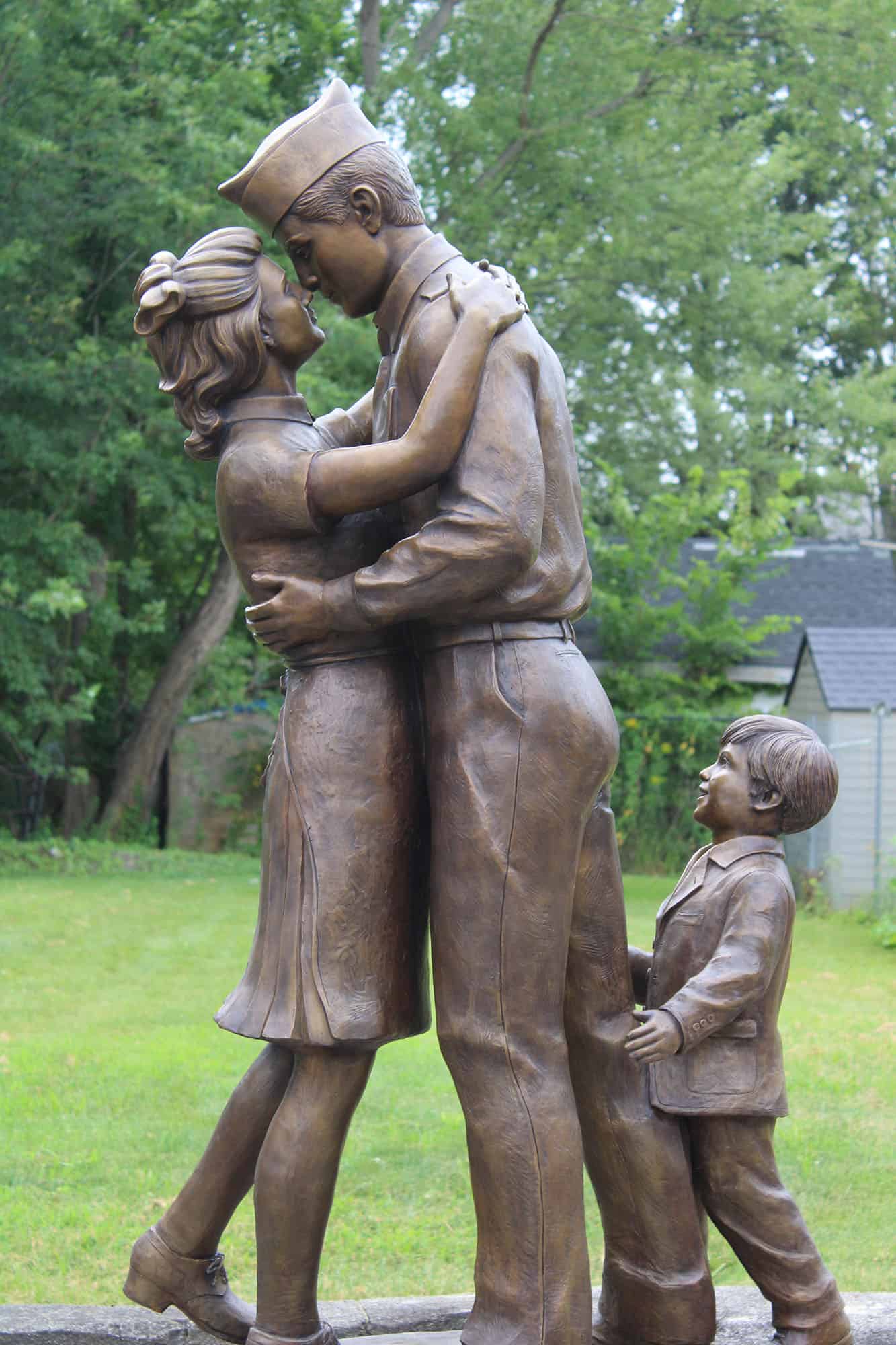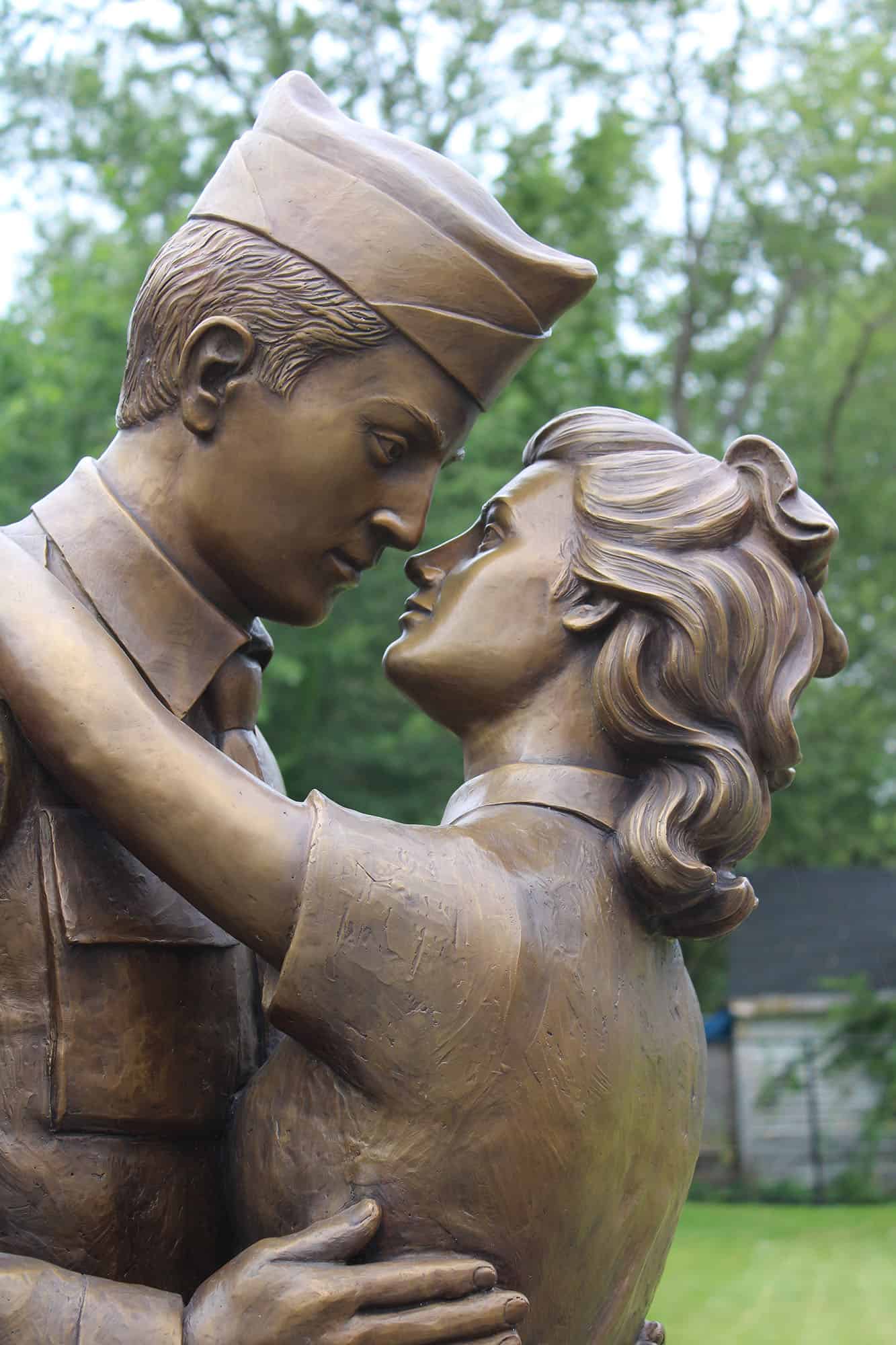 The Wright Museum of World War II desired to create for their museum grounds an iconic sculpture representing the celebratory homecomings of American soldiers from the front. The sculpture depicts a husband reuniting with his wife and young son, overjoyed and relieved that they can continue their life now that the war has ended. Creating the sculpture meant a lot to Robert whose father was drafted to fight in WWII. Although his parents weren’t yet married and hadn’t started a family, Robert envisioned the scene as his father coming home from the war, embracing his mother. While to Robert the sculpture may represent his parents, for viewers he wanted it to be a universal reflection of the experience had by so many others.