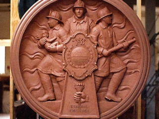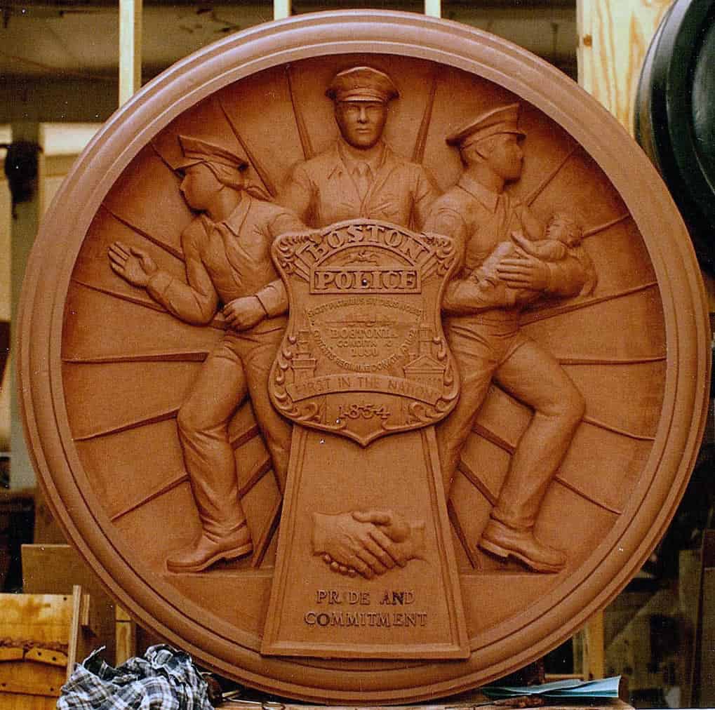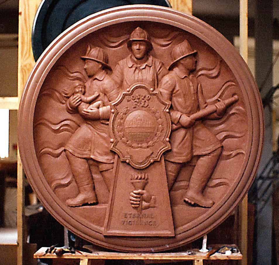 I created two plaques with relief sculpture commemorating the Boston Fire and Police Departments for the main lobby of International Place, a skyscraper in the Financial District.