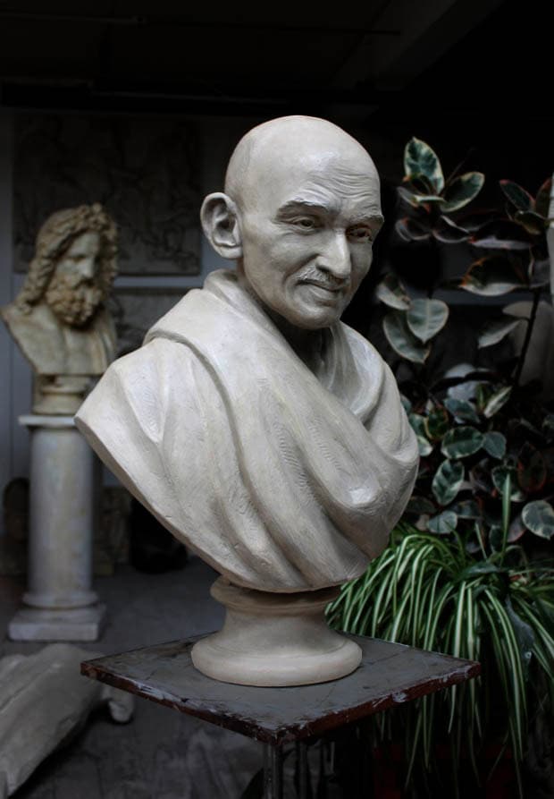 Gandhi (1869-1948) was a lawyer and anti-colonial nationalist in India who helped to secure India’s independence from Britain. He inspired civil rights movements around the globe. In his portrait, the angle of the head and facial expression illustrate his personality and wisdom.