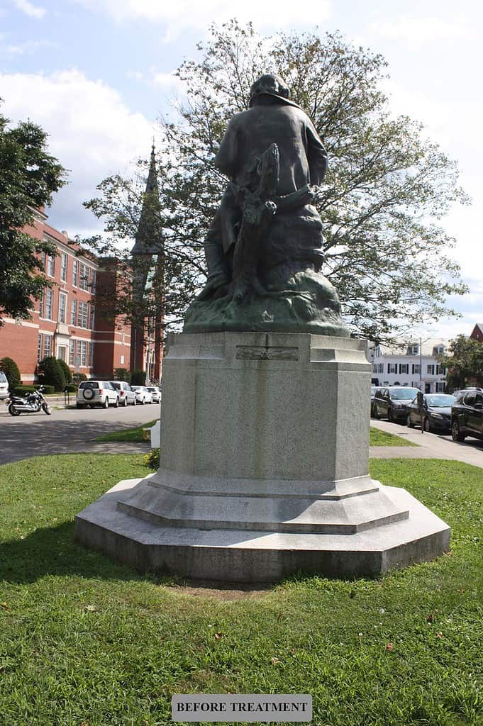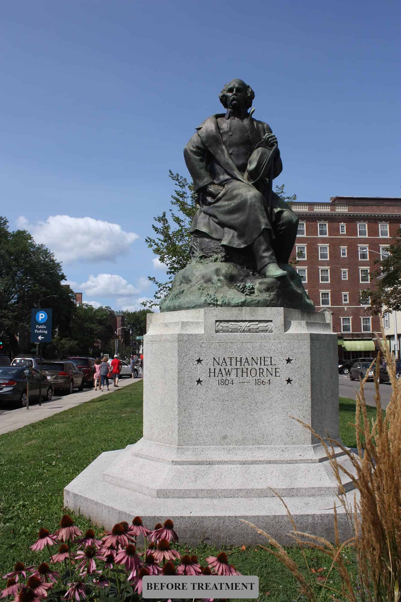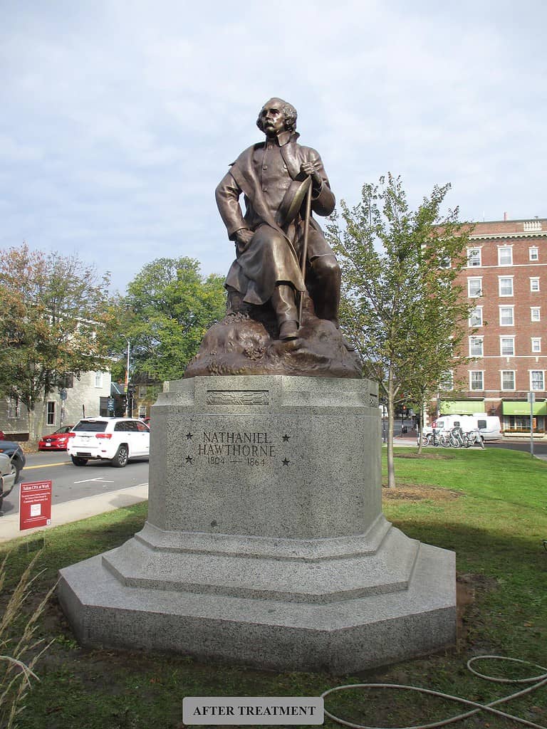 Located on Hawthorne Boulevard, the monument consists of a 9-foot-high bronze sculpture of the famed writer sitting on a rock atop a large granite base. The treatment completed in 2017 included cleaning the granite base, repointing the joints of the granite, cleaning the bronze, renewing the bronze’s patina, and applying protective coatings of incralac and wax to the bronze.