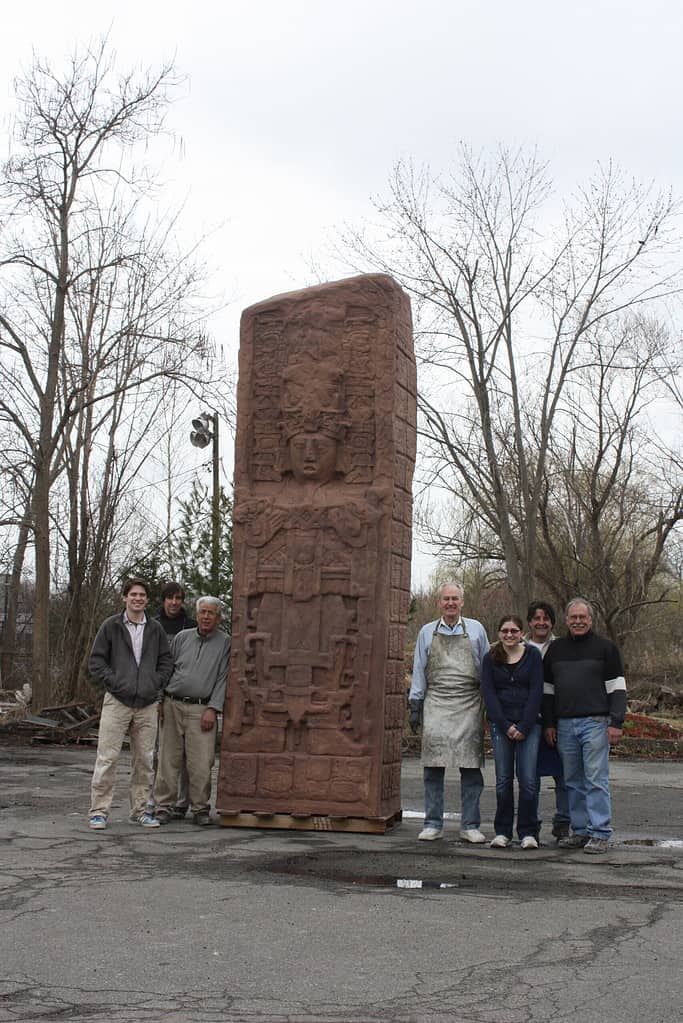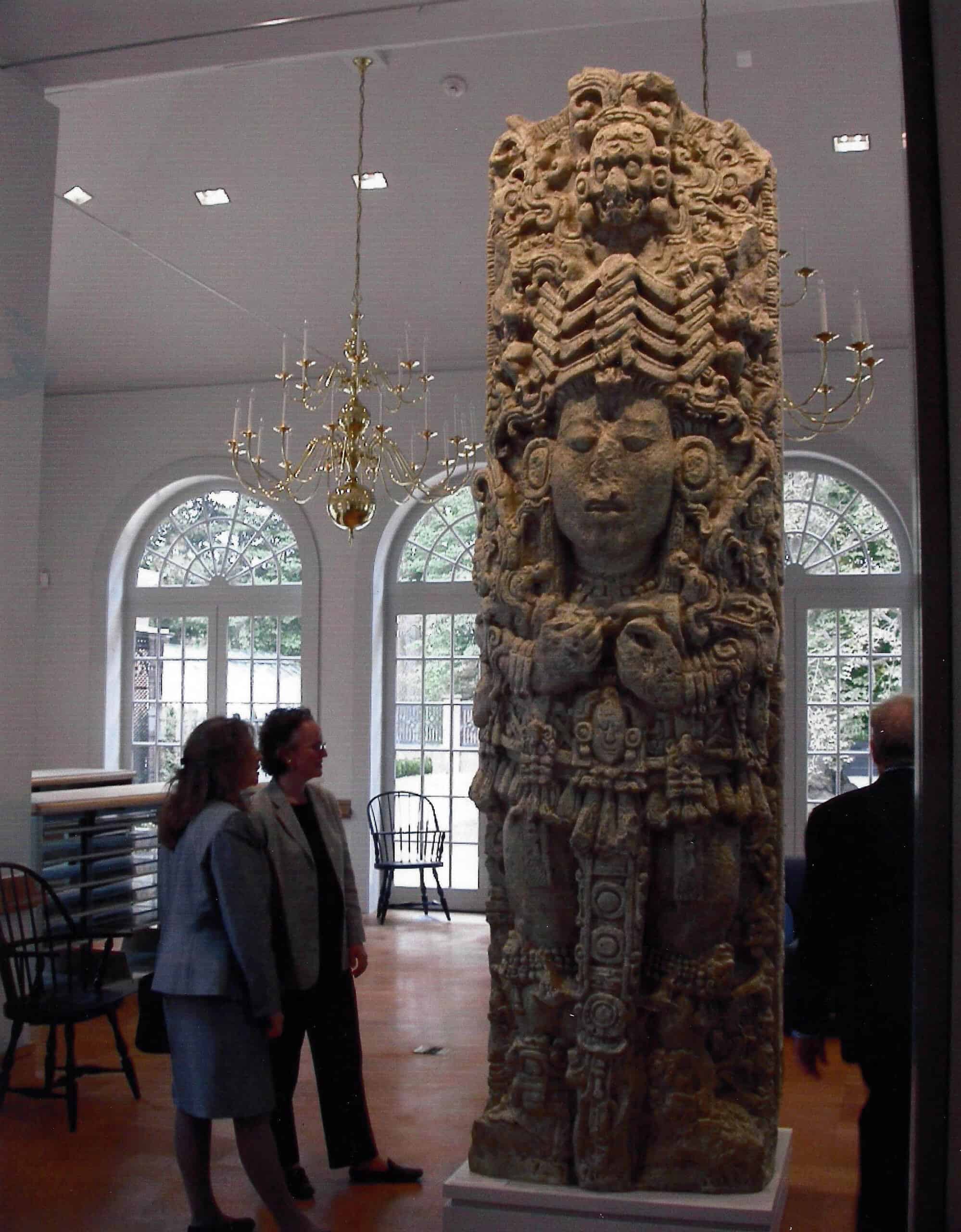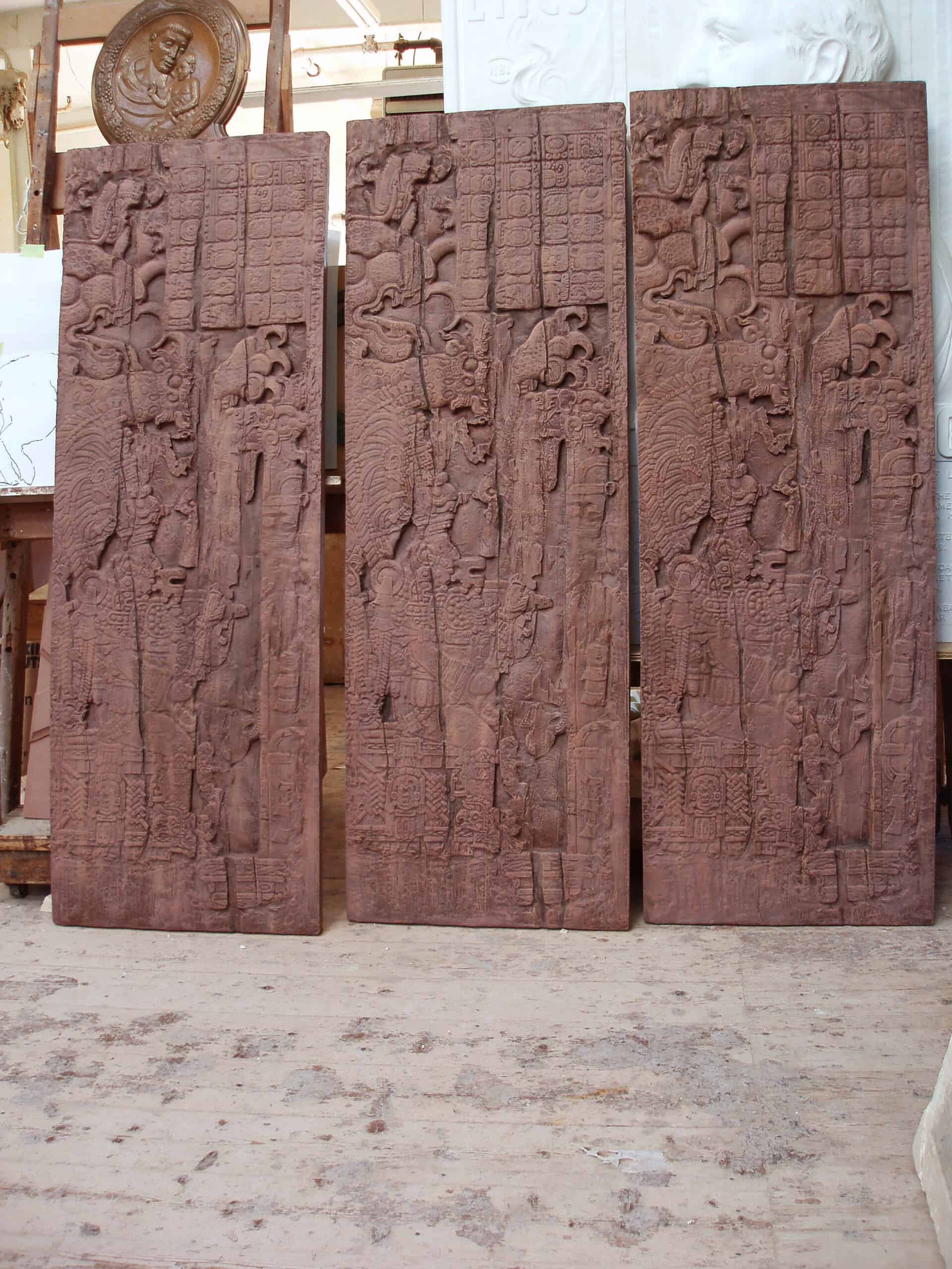 The casts of Maya sculptures and monuments in the collection of the PMAE are well-known and sought after as reproductions. Several copies of stelae have been replicated and two examples are shown here. The stela reproduction in the first image is on permanent display at Dumbarton Oaks in Washington, DC. The stela copy in the second image was featured in an exhibition at the Science Museum of Minnesota. The third image shows copies of a Tikal lintel, one of which is also at Dumbarton Oaks.