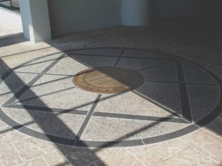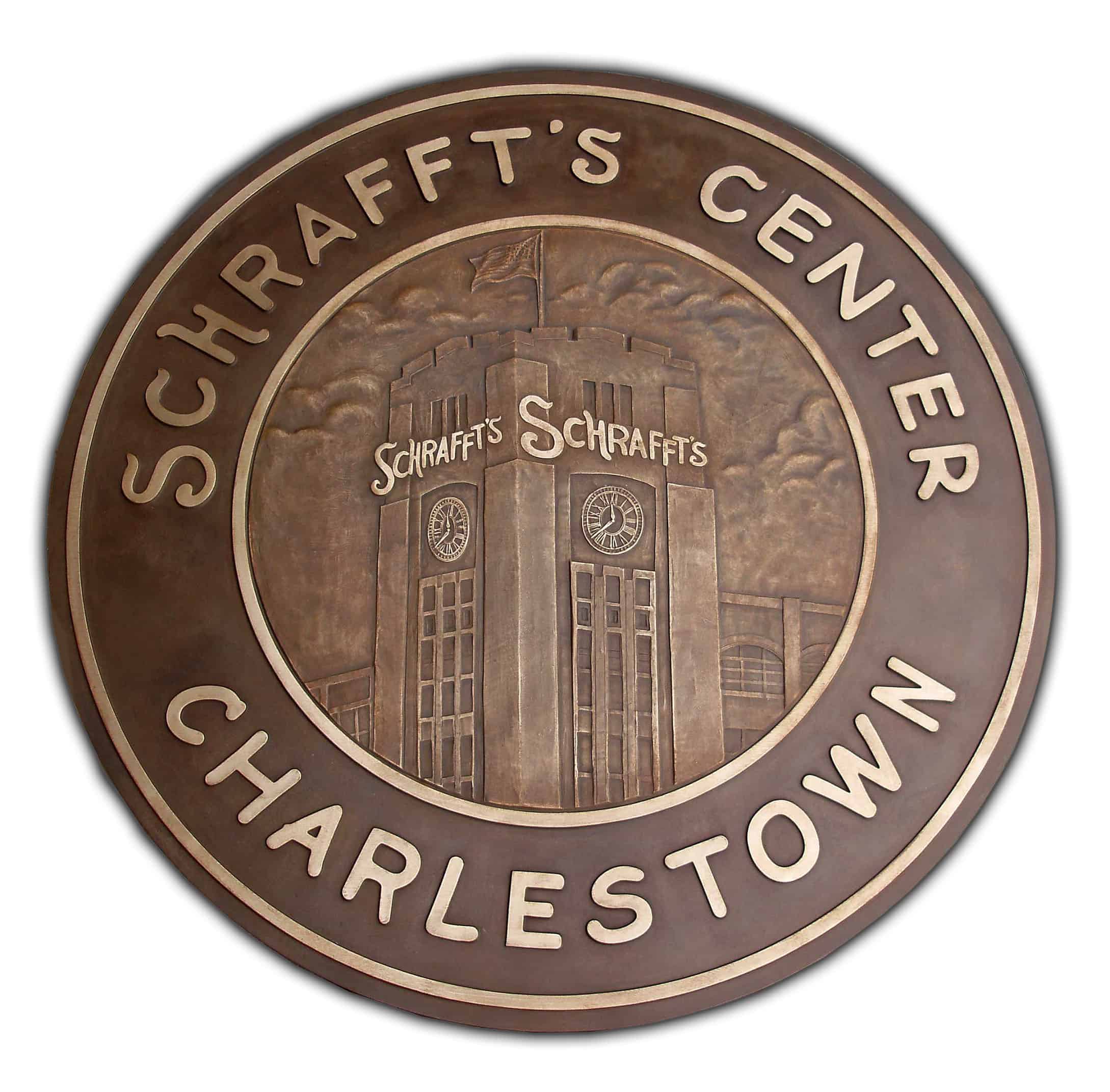 This bronze medallion is located at the entryway of the historic Schrafft’s Candy factory building. Robert also designed the granite surround.